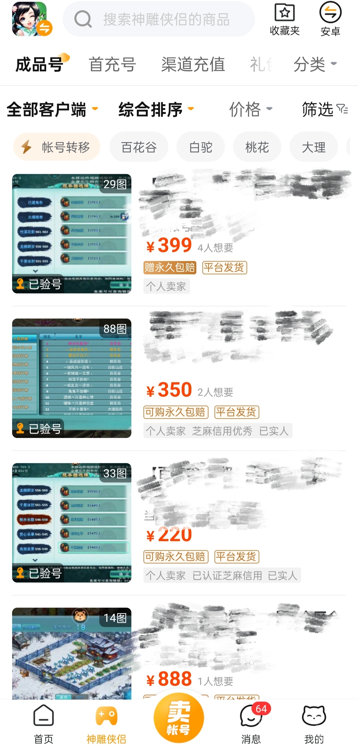 交易貓平臺上的神雕俠侶游戲賬號種類繁多,無論你是想要體驗高手風(fēng)采的頂級賬號,還是想要從頭開始的新手賬號,都能在這里找到滿意的選擇。平臺上的賬號信息詳細(xì)、真實,你可以根據(jù)自己的需求和預(yù)算,輕松挑選到合適的賬號。此外,交易貓還提供了豐富的篩選分類和排序功能,讓你可以根據(jù)自己的喜好和需求,快速找到心儀的賬號。無論你是想要尋找某個特定等級的賬號,還是想要找到某個特定人物的賬號,都能在這里輕松實現(xiàn)。