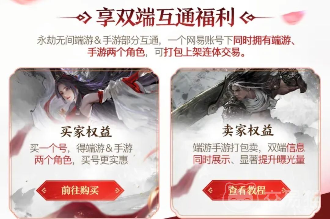 永劫無間無論是端游還是手游的賬號(hào)交易不可以選擇交易貓,安卓用戶點(diǎn)擊上方鏈接或者按鈕就可以安裝使用,蘋果用戶也可以前往交易貓官方網(wǎng)站登錄,也可享同樣的交易功能。目前用網(wǎng)易賬號(hào)登錄的的永劫無間的端游手游都是連體的,這種價(jià)值在交易貓內(nèi)更容易賣出,而且整體價(jià)值也是很高的,如果玩家們有合適的賬號(hào)可以掛在交易貓?jiān)囋嚒?/p>