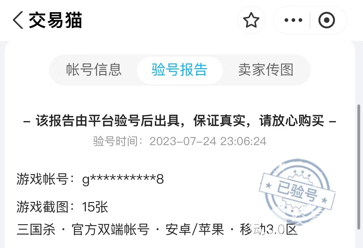 再來說賬號的驗號報告,并不是所有賬號都能獲得驗號報告,只有那些經(jīng)過平臺驗證的資料真實可靠的賬號才有的。除了驗號報告外,大家下單以后還有二次驗號的機會,反復(fù)驗證就不會上當(dāng)受騙買到假號了。
