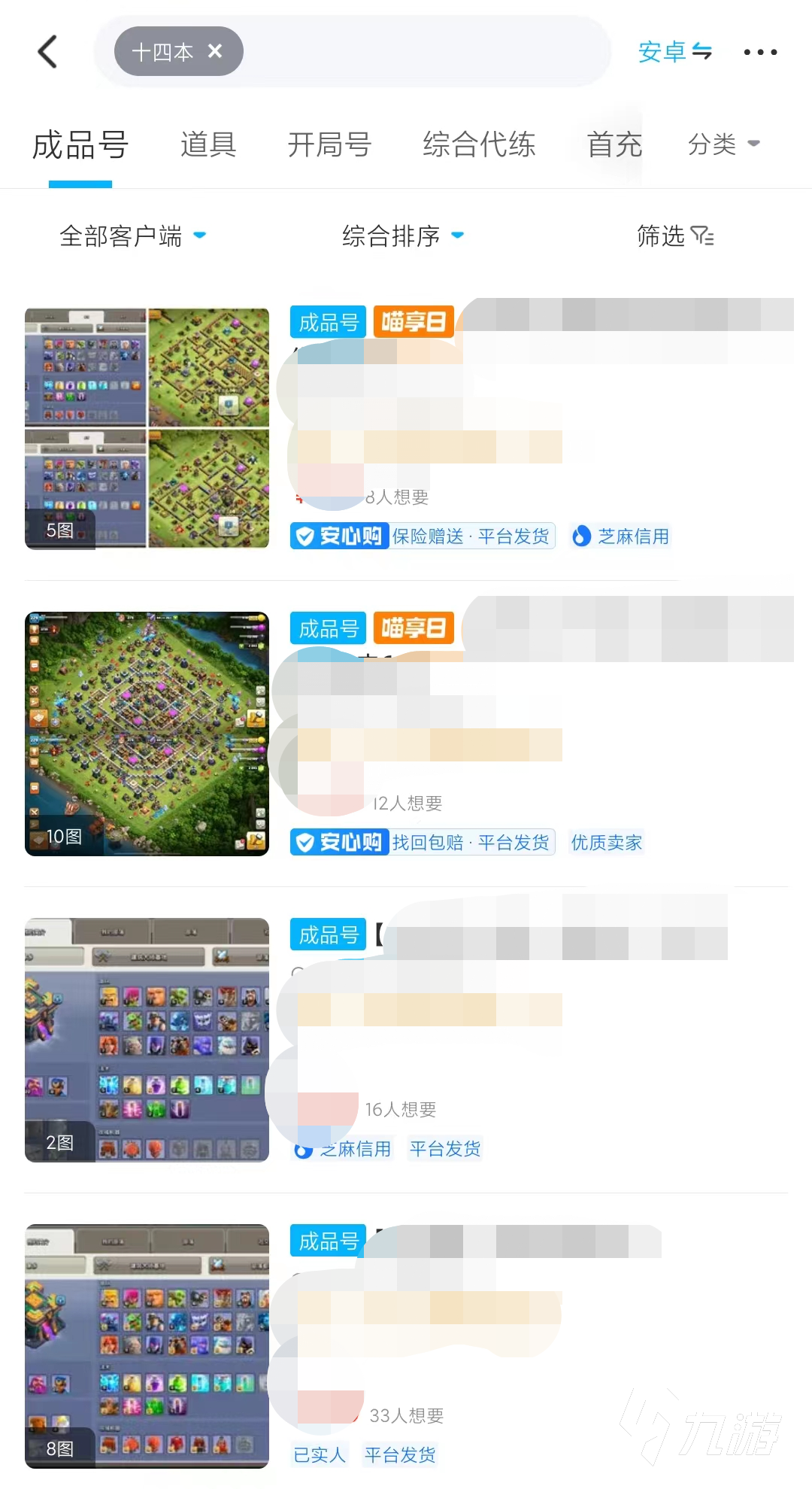 在交易貓內(nèi)上架的賬號(hào)數(shù)不勝數(shù),14本的賬號(hào)也是大有的在,大家可以在部落沖突專區(qū)搜索14本,參考已經(jīng)上架的賬號(hào)的價(jià)格來(lái)幫助估價(jià),這樣的優(yōu)點(diǎn)就是可以更加的了解市場(chǎng)賬號(hào)的價(jià)格,方便定價(jià)。