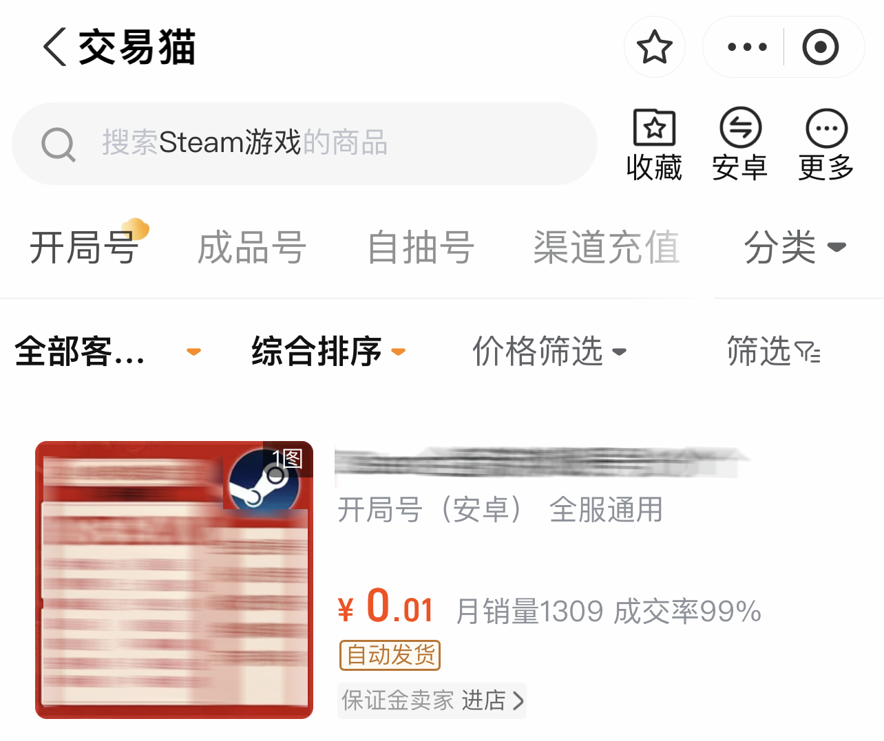 Steam是個很好的游戲平臺,相關(guān)賬號交易的需求也很多。steam賬號交易平臺哪個好呢?在交易貓里你不僅可以很好地交易,還能感受到平臺里各種細致貼心的服務(wù),還能看到各種游戲的賬號商品,也不用擔(dān)心賬號出現(xiàn)安全問題,總之一切交給平臺就好。