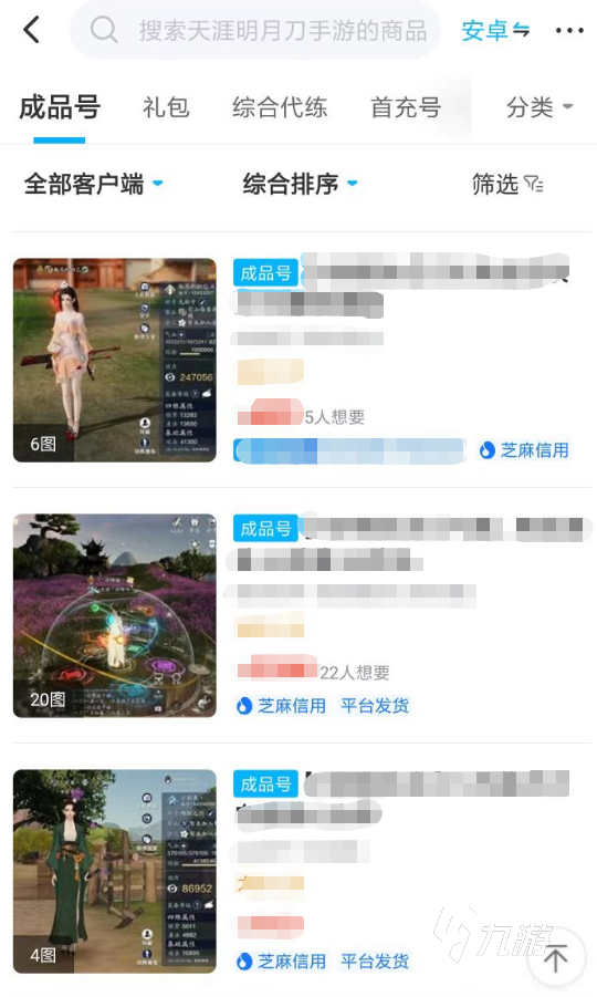 2、當(dāng)然,app內(nèi)也專門針對部分要求低的玩家準(zhǔn)備了大量的初始號交易。初始號可以讓大家以更優(yōu)惠的價格進(jìn)行獲取,同時還可以讓玩家們體驗(yàn)到天涯明月刀當(dāng)中的各種游戲細(xì)節(jié),并且需要玩家全身心的投入到其中去提高戰(zhàn)力,這一特點(diǎn)非常適合喜歡挑戰(zhàn)的玩家們來進(jìn)行購買。