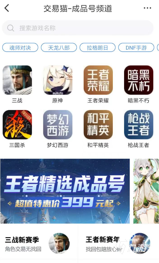 1、交易貓專門為每一個想要獲取游戲號的玩家,搭建了一個成品號的交易專區(qū)。顧名思義,成品號就是游戲號當(dāng)中的高級賬號,賬號內(nèi)的角色戰(zhàn)力十分強(qiáng)大,也有著高級的裝備。玩家們使用這一類賬號的時候,會讓游戲變得更簡單,自然也會體驗(yàn)到更好的游戲氛圍。