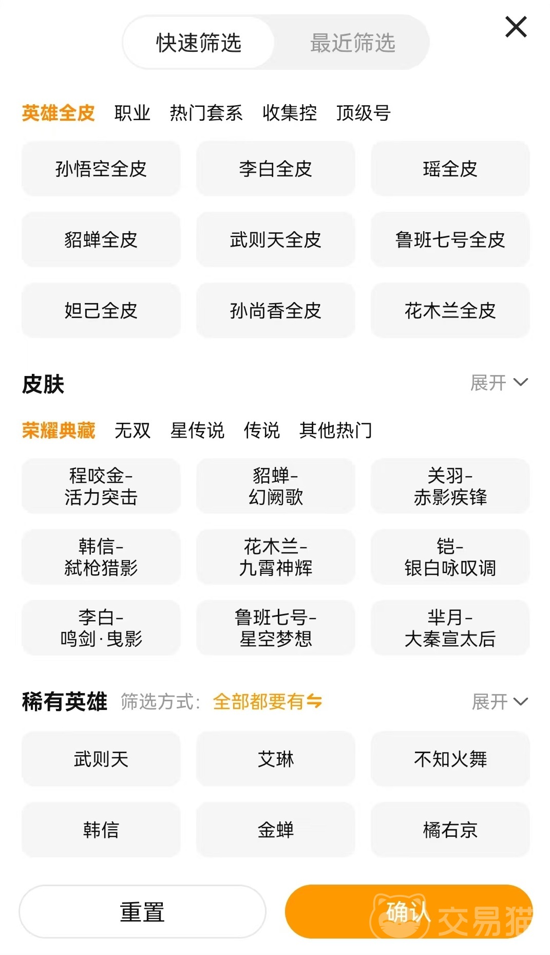 交易貓平臺(tái)中擁有海量王者游戲號(hào),如果大家對(duì)于賬號(hào)有一些特殊需求,例如必須要帶有哪些英雄、皮膚或者是必須帶有哪些稀有英雄或者是對(duì)vip等級(jí)以及皮膚數(shù)量有要求等,都可以在成品號(hào)的篩選中直接找到。通過(guò)點(diǎn)擊形式就可以將所有自己要求的全部選擇出來(lái),這樣進(jìn)行篩選,就可以在海量號(hào)中快速鎖定最符合要求的那一些。接下來(lái)再看一下其他方面的情況以及對(duì)對(duì)比一下價(jià)格,就可以輕松上手了。當(dāng)下單完畢之后就可以進(jìn)入到平臺(tái)發(fā)貨環(huán)節(jié),大多數(shù)操作都是由專業(yè)交易員來(lái)進(jìn)行,只需要簡(jiǎn)單配合一下完成重新綁定,很快就可以收到自己心儀的號(hào)。這個(gè)過(guò)程既快速又安全,不會(huì)出現(xiàn)其他問(wèn)題。