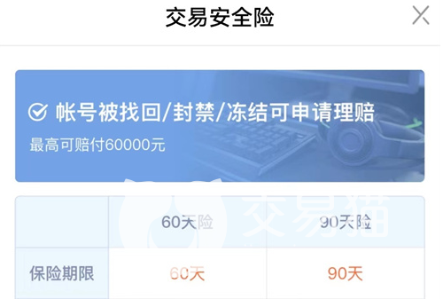 3.最后一點,也是小編為什么會說交易貓是一款可靠的平臺的原因,相信很多的小伙伴在交易賬號時會遇到一些沒有信譽的玩家,在交易過后還偷偷的找回賬號或者私自修改密碼,使得買家的利益受損卻無可奈何,不過在交易貓平臺,只要玩家在交易之前購買了平臺內(nèi)的交易安全險,一旦有賣家在交易過后出現(xiàn)上面的任何一種行為,平臺便會為買家買家的損失進行高額的賠償。