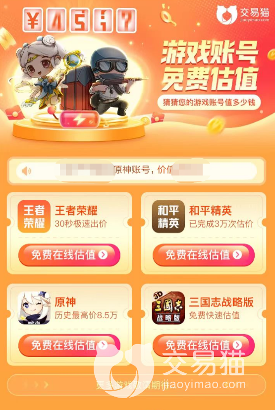 2.除此之外,想必對于很多第一次出售賬號的玩家來講比較令人頭疼的問題的就是該如何給自己的賬號進行定價,因為一旦定價過高可能會導(dǎo)致自己的賬號賣不出去,但是定價過低又會使自己的利益受損,交易貓平臺為了幫助大家解決這個問題,在平臺內(nèi)推出了免費的的賬號價格評估機制,幫助玩家來進行賬號的定價。