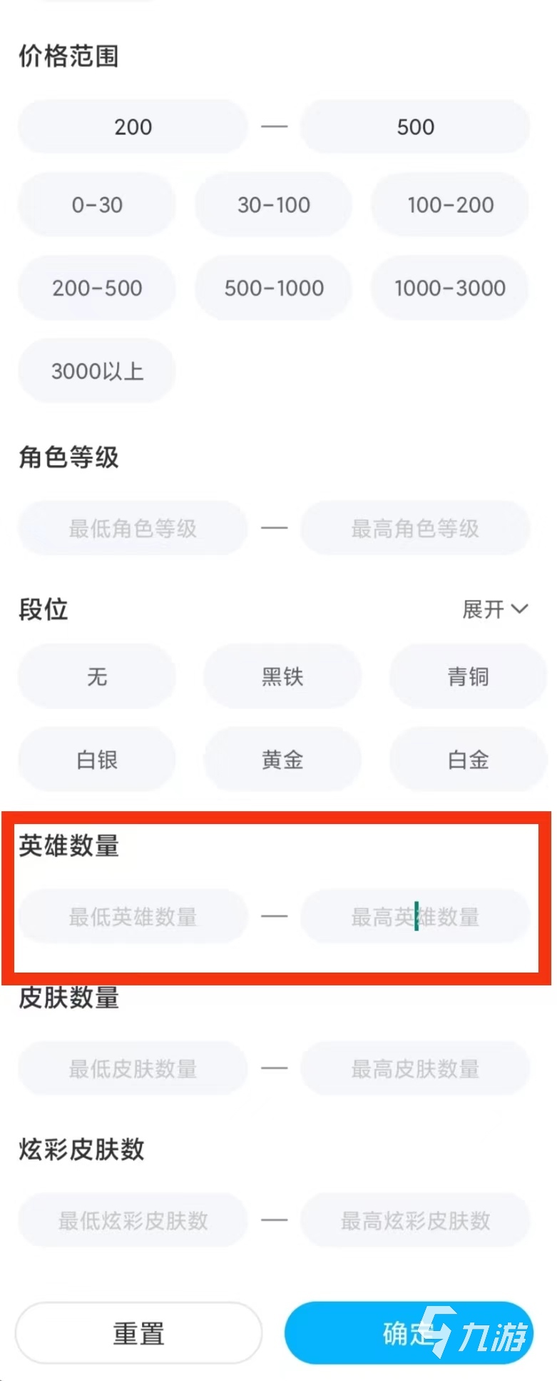 Lol全英雄賬號(hào)交易貓上有很多,玩家可以在交易貓主頁(yè)搜索英雄聯(lián)盟找到英雄聯(lián)盟專區(qū),然后交易貓為了玩家能更加快捷的找到自己心儀的賬號(hào),設(shè)立的有篩選功能,想要lol全英雄的玩家可以在英雄數(shù)量那一欄輸入自己想要的數(shù)值即可。填入全英雄數(shù)值點(diǎn)擊確定就可以知道lol全英雄賬號(hào)多少錢了。玩家也可以選擇價(jià)格區(qū)間和皮膚數(shù)量等。玩家根據(jù)自己想要賬號(hào)情況進(jìn)行篩選就行了,非常方便。