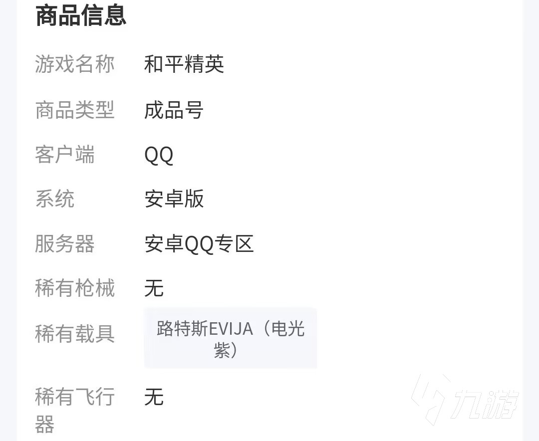不管是在線上線下購物同樣的價格都是需要對商品的內(nèi)容進行對比的,交易貓考慮到這一點,就將和平精英的商品信息用表格的形式為大家呈現(xiàn)了出來,賣家在填寫的時候非常方便,反正買家的對比的時候也更加直觀,像槍械、載具和飛行器還有歷史段位都可以更加輕松的展示出來,在后續(xù)還有客戶的驗號步驟做擔保。