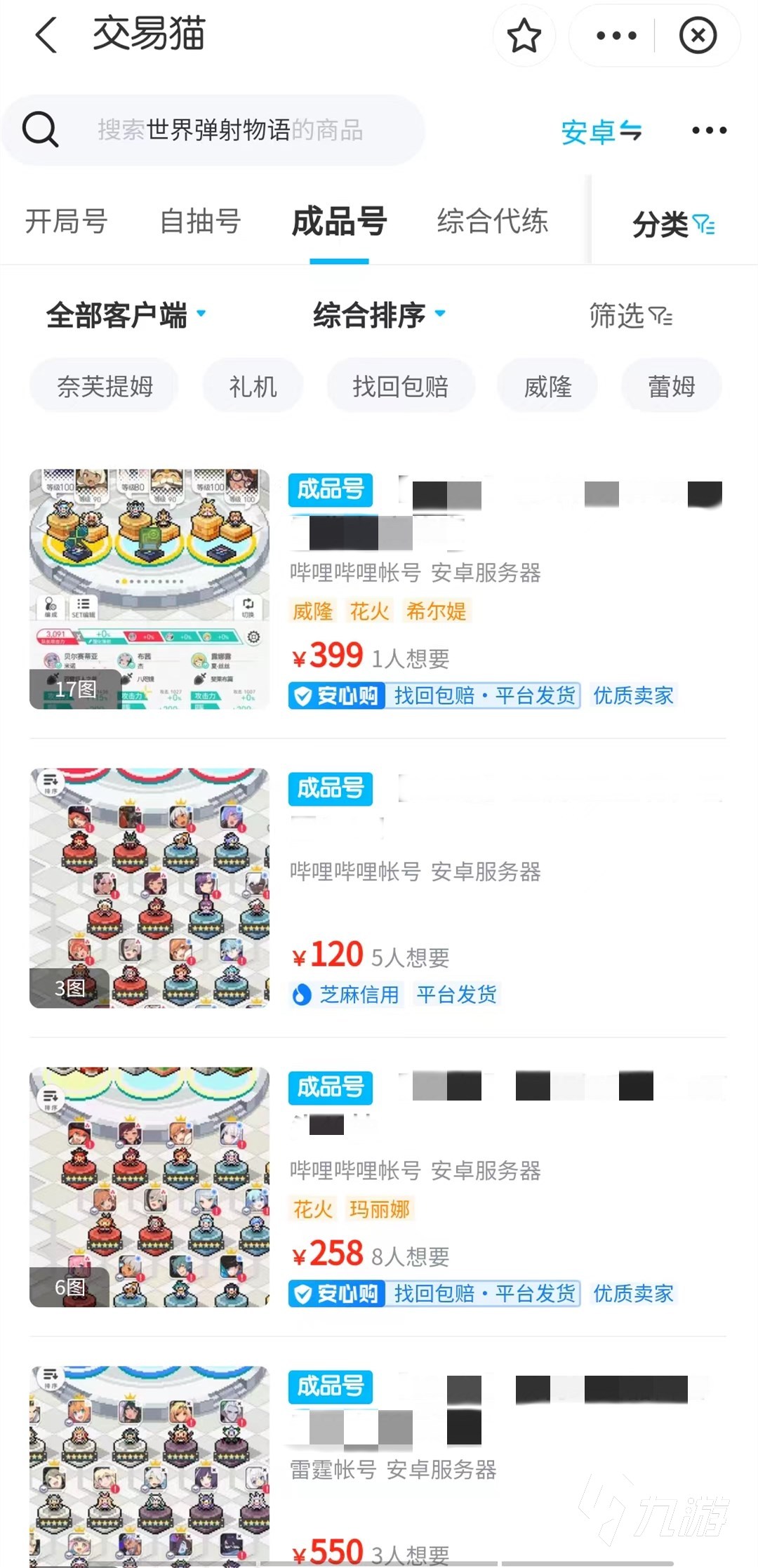 首先在交易貓找到相關(guān)游戲后,你可以看到大量的賬號(hào)信息出現(xiàn),這時(shí)候你只要進(jìn)行篩選就可以了,類似相同的賬號(hào)在交易貓可能會(huì)出現(xiàn)上百個(gè),所以買家的選擇性是非常多的。