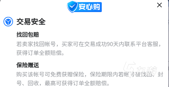 交易平臺(tái)中還要很多表明了投保的商品可以選擇,選擇這些被投保的商品購(gòu)買之后在一定的保險(xiǎn)天數(shù)之內(nèi)賬號(hào)出現(xiàn)問題是可以找客服進(jìn)行索賠處理的,但是一定要注意該商品要是投保的,并且在保險(xiǎn)天數(shù)之內(nèi)。