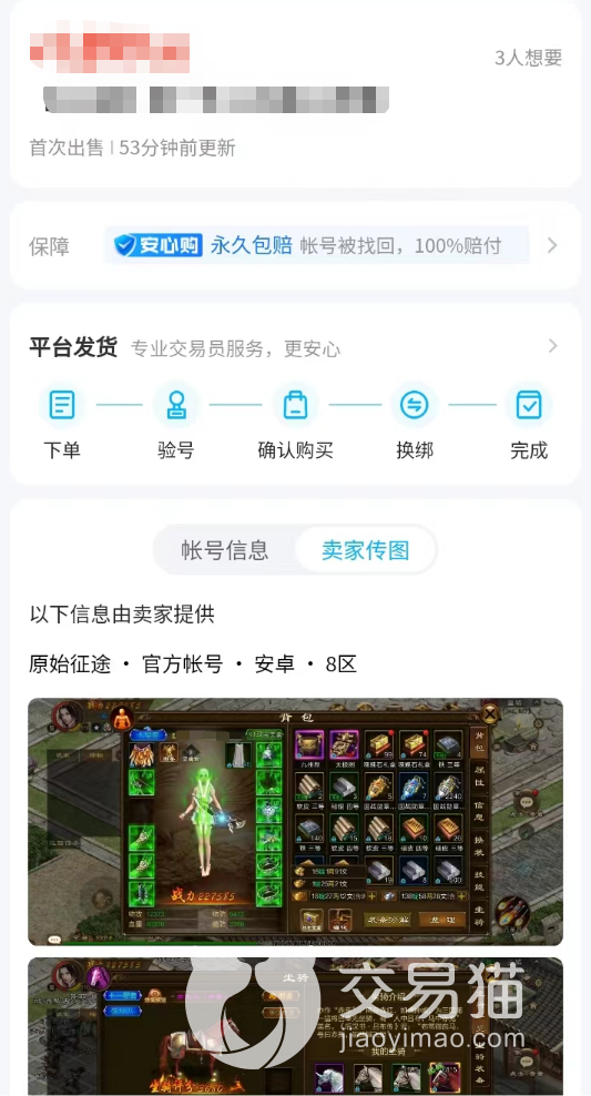 而大家在平臺(tái)內(nèi)挑選商品的時(shí)候,也可以直接進(jìn)入到詳情頁面當(dāng)中來進(jìn)行查看。一來是可以了解到更多游戲號(hào)的內(nèi)容,二來則是可以通過賣家提供的截圖,判斷出游戲號(hào)內(nèi)所包含的具體道具以及角色戰(zhàn)力。完全滿意之后,大家就可以按照平臺(tái)的流程開始交易了。