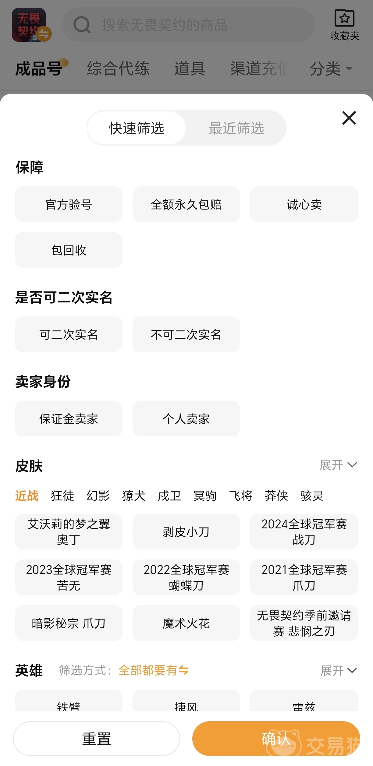 隨著這款游戲熱度的不斷飆升,交易貓平臺內(nèi)關(guān)于無畏契約的賬號商品數(shù)量也在持續(xù)攀升中,無論你是預(yù)算有限,只想買個基礎(chǔ)賬號過渡,還是想一步到位入手高圖鑒、全皮膚的豪華賬號,在交易貓都能找到對應(yīng)的選擇。多樣的篩選功能加上平臺完善的驗號與保障機制,讓整個交易過程變得既高效又安心,心動不如行動,趕緊下載試試吧!你想要的賬號,也許現(xiàn)在就正等著你。