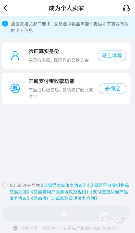2、嚴(yán)格的賣家身份申請,也會進(jìn)一步加強(qiáng)整個平臺的交易安全性。在交易貓app當(dāng)中,并不是每一個玩家都可以自由的去發(fā)布交易內(nèi)容,大家都必須要去開通一個賣家身份之后,才能夠獲得相關(guān)權(quán)限,這一點規(guī)則可以過濾掉很多垃圾交易信息。