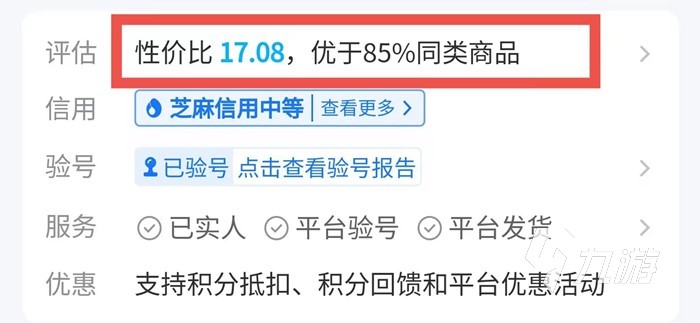 王者榮耀這款游戲這么多年了,小伙伴們對于賬號的值多少錢應該也有自己的判斷。但是想知道性價比就不太容易了,交易貓在每個賬號的展示頁面中在評估一欄中已經(jīng)給買家做好了賬號性價比的對比了,這個評估是對全交易貓平臺上的賬號進行的對比參考價值可以說是非常有用的了。這個交易貓?zhí)峁┑脑u估就可以讓買家選擇賬號的時候做到心中有數(shù)了。