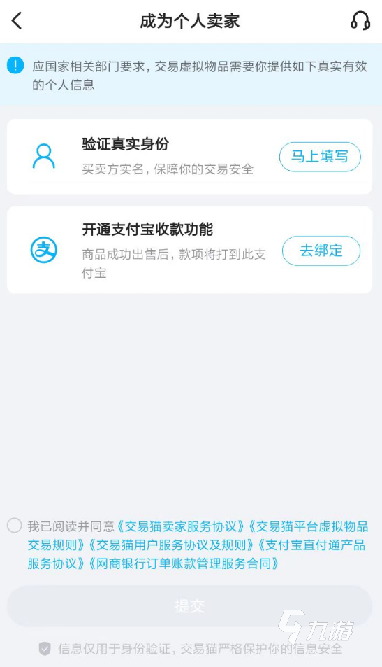 2、當(dāng)然,平臺內(nèi)也有著完善的交易制度,所以大家想要正式開始賣號的話,最好是去開通一個賣家身份。針對大部分玩家只會出售自己的游戲號來說,個人賣家身份是非常合適的,只需要經(jīng)過簡單的身份和收款功能認(rèn)證即可。