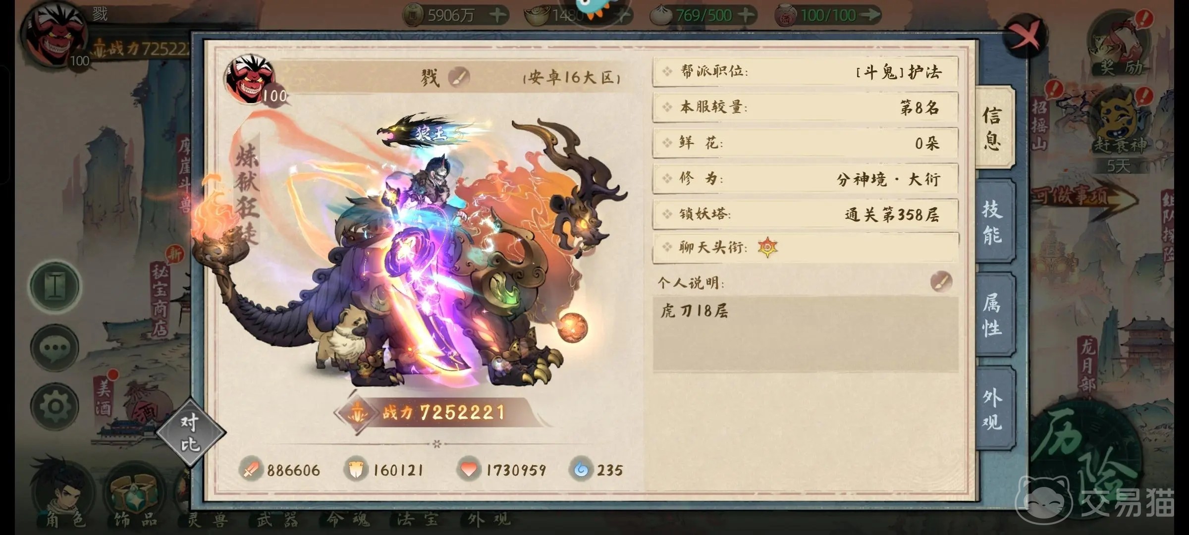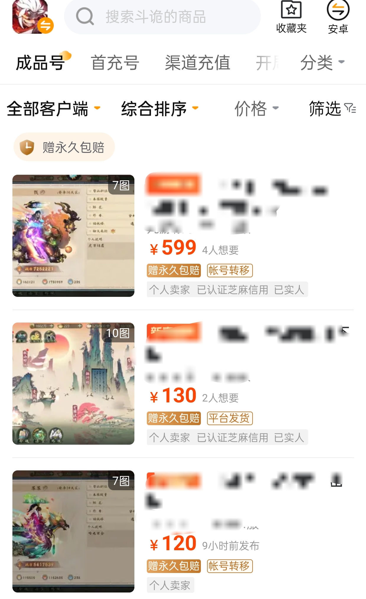 在交易貓上,你可以找到各種類型的《斗詭》賬號,無論是高等級、高戰(zhàn)力的角色,還是擁有稀有裝備、道具的賬號,應(yīng)有盡有。你可以根據(jù)自己的需求,輕松挑選到心儀的賬號。在琳瑯滿目的賬號中,總有一款會正中你的下懷。
