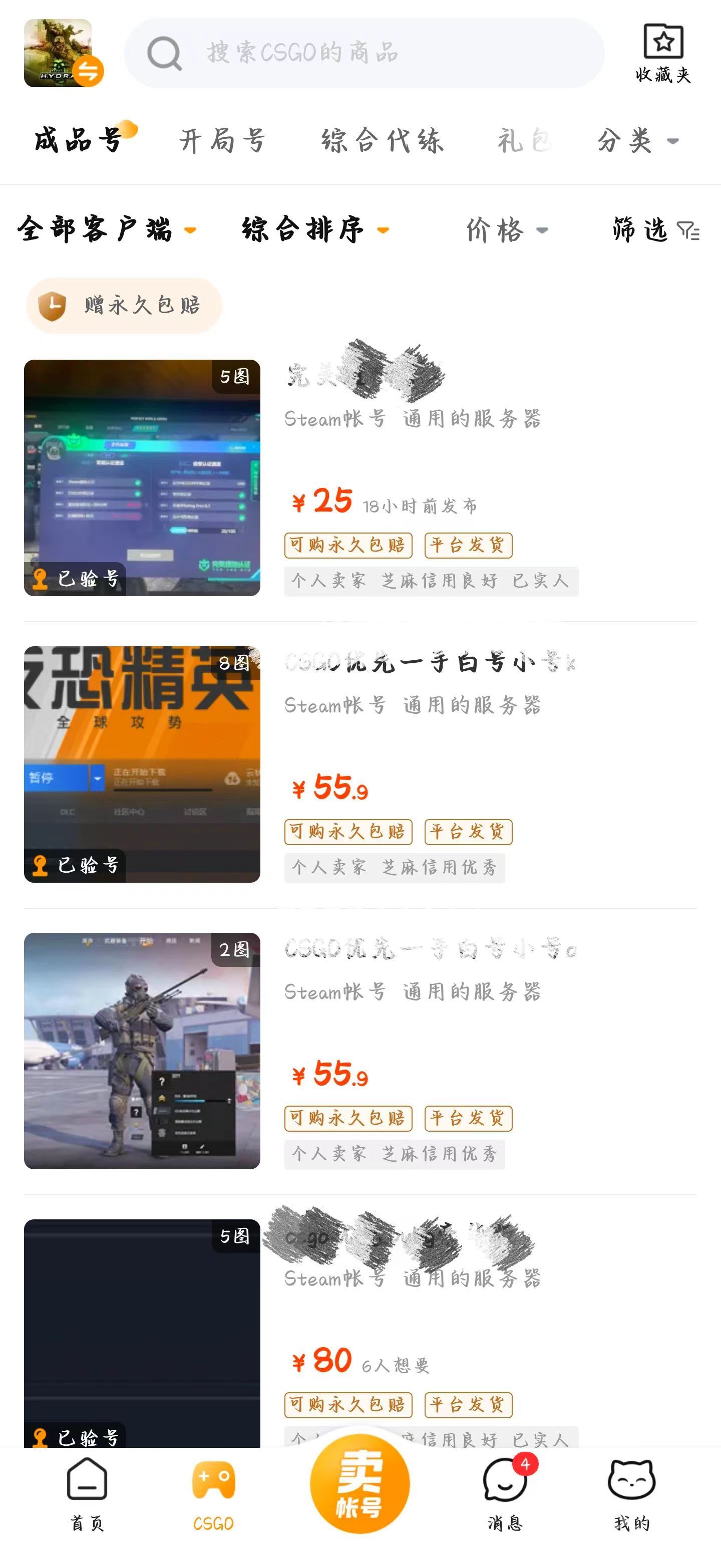 瞧一瞧看一看,從一塊到一百,什么價位的csgo游戲賬號,各個客戶端的賬號,交易貓平臺都有,就是各位想找什么樣的賬號,交易貓都可以滿足大家的購物需求。接下來就是玩家們的挑選時間了,小編相信在這么多的游戲賬號里面,總能夠找到玩家們喜歡的游戲賬號。