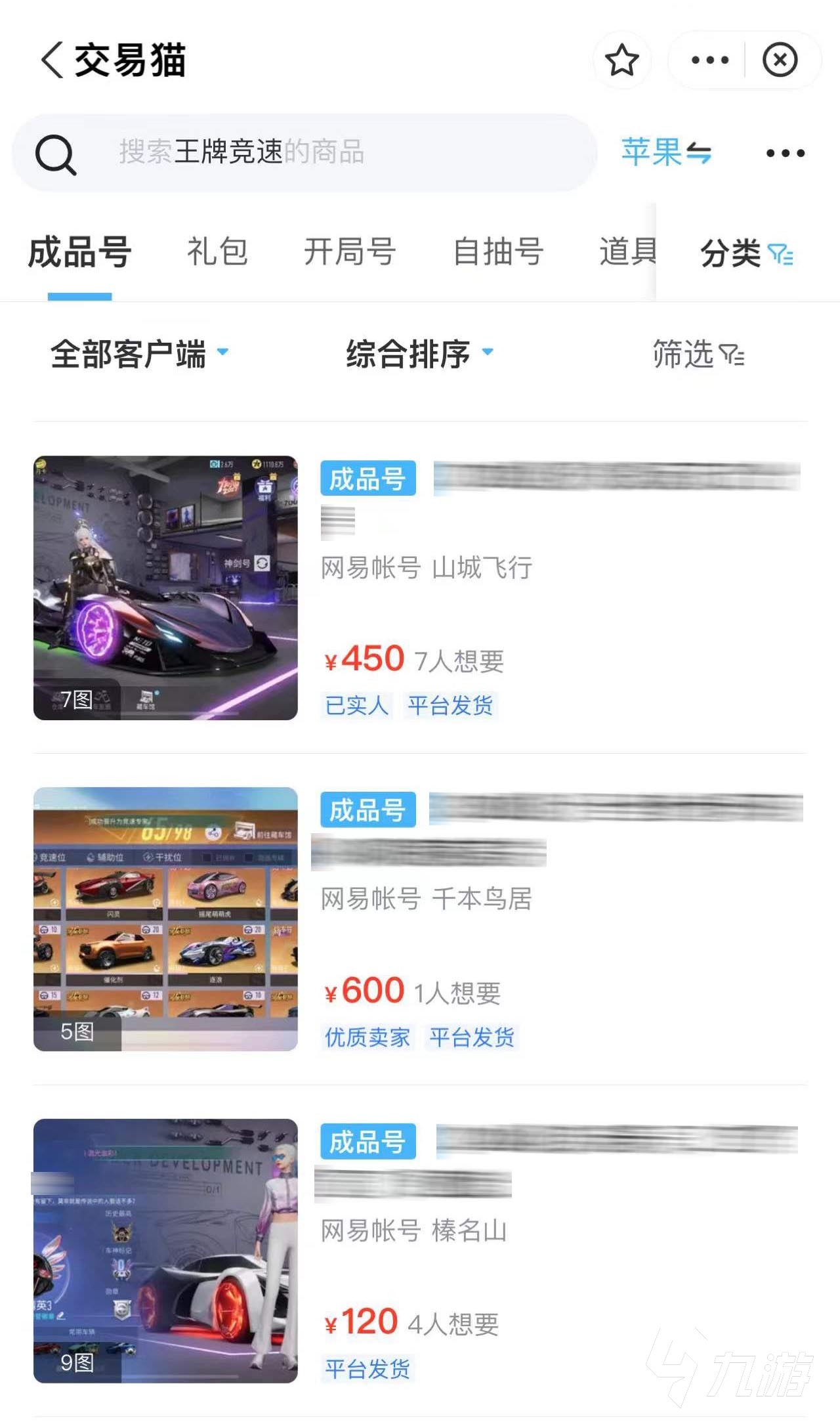 王牌競速這款游戲除了等級(jí)比較重要外,賬號(hào)里的賽車也更加重要。有些玩家比較鐘愛于某輛賽車,這時(shí)候你都可以在交易貓里迅速定位到擁有該賽車的賬號(hào),這樣就能讓你輕松地購買到擁有極品限定賽車的賬號(hào)。另外,如果你想要追求抽獎(jiǎng)的刺激過程的話,也可以迅速購入自抽的賬號(hào)。當(dāng)然,成型的賬號(hào)也可挑選,能夠更大程度地節(jié)約你的時(shí)間,迅速挑戰(zhàn)更高層次的對(duì)手。