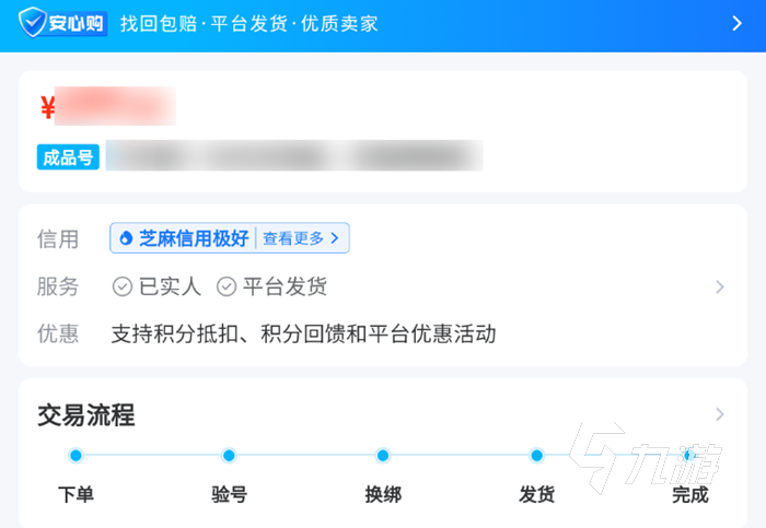 如果大家點(diǎn)擊任意一個(gè)賬號(hào)商品,除了其自帶的一些內(nèi)容,比如戰(zhàn)斗力呀、包含的角色職業(yè)呀、擁有的裝備皮膚呀,還會(huì)有一些對(duì)商品以及店家本身的附加服務(wù)介紹。比如其是否支持平臺(tái)的安心購(gòu)服務(wù),是否帶有平臺(tái)發(fā)貨功能,交易流程是怎么樣的,賣家的信用如何,是否經(jīng)過(guò)了實(shí)人認(rèn)證。這些都是能夠一目了然看到的。大家不要覺(jué)得這些信息不重要,因?yàn)榫€上的電子貨品交易,有很多需要注意的安全隱患,而且相對(duì)而言水更深,那么通過(guò)這些信息,我們就能夠很輕松地找到一些看起來(lái)靠譜的賣家。而且平臺(tái)對(duì)于安全的機(jī)制保障工作也是十分到位的。