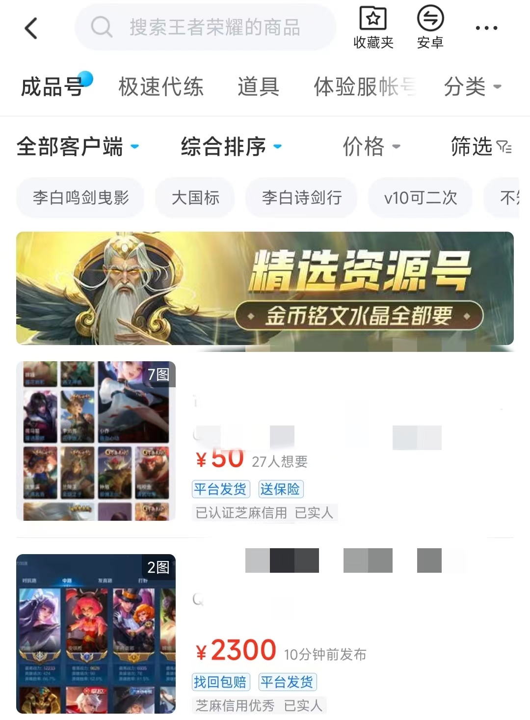 段位是一種仁者見仁智者見智的指標,追求段位的玩家眼中高段位價值頗豐,而在佛系玩家眼中段位又顯得有些雞肋。英雄和皮膚卻不同,這兩種資源應該是所有玩家都公認的價值載體。隨著游戲運營時間的不斷延長,后來的玩家肯定會錯過不少限定皮膚,即便有心追趕恐怕也會花費巨量的時間與金錢。相對應的,游戲再好也會有膩的時候,老玩家總會有退游的那一天。在這種大趨勢下,賬號交易就顯得尤為必要。