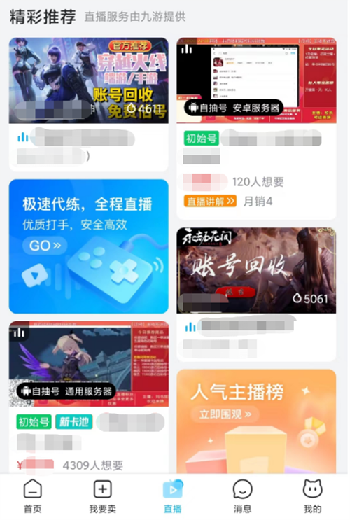 在賬號(hào)交易類軟件中,還能提供直播服務(wù)給用戶,也是非常難得的,尤其是還有大量的主播入駐其中,能夠滿足買家們的各類交易需求,通過直播間能夠看到各類賬號(hào)以及道具的買賣,買家們可以自由地挑選各類商品,還提供了不同的人氣主播榜單,讓對(duì)其感興趣的玩家們,在進(jìn)入觀看的同時(shí)滿足自己的購買需求。