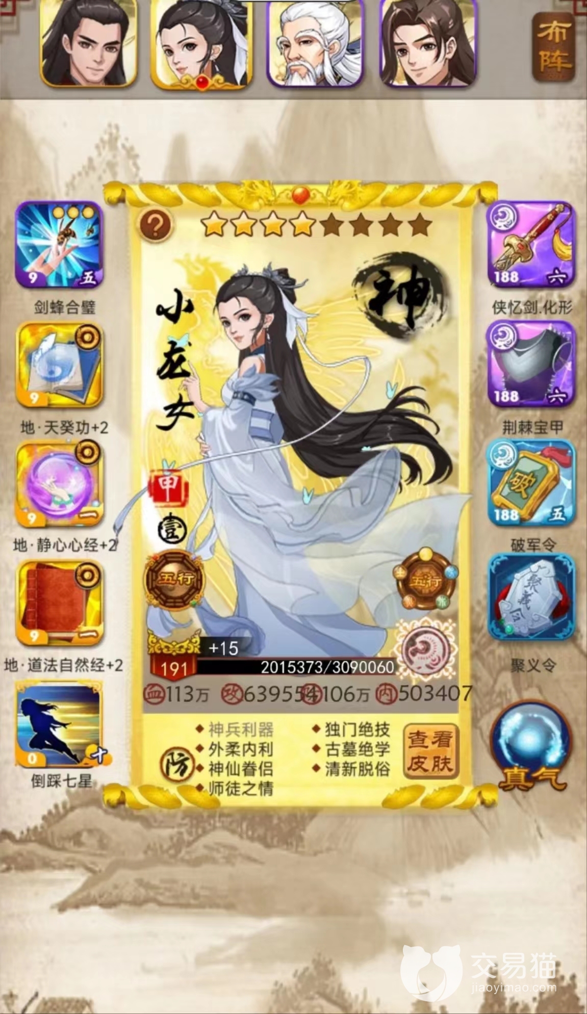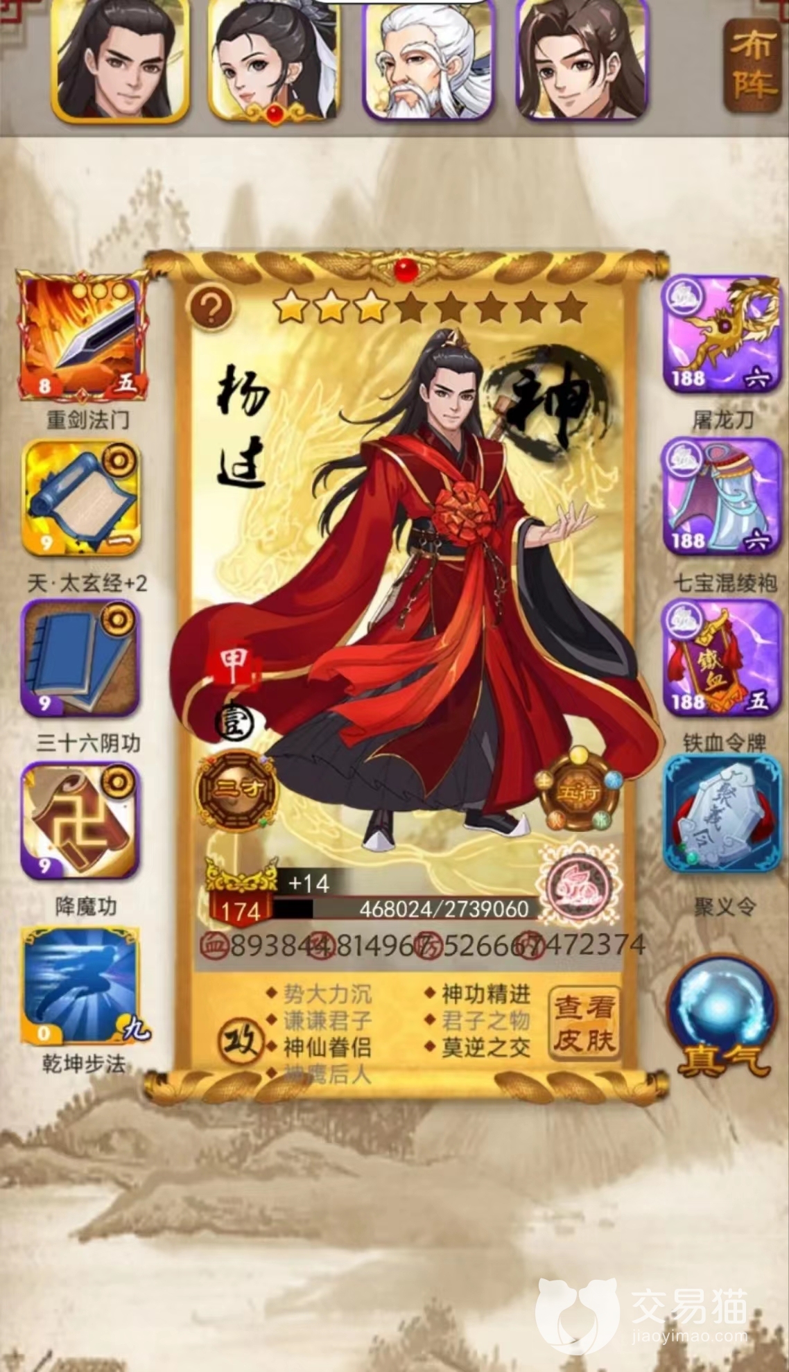 在大掌門中賬號的強弱在于角色的等級和弟子的品質(zhì),角色等級越高弟子的等級上限就越高,弟子的品質(zhì)越好弟子的戰(zhàn)斗力就越高,當然弟子裝上品質(zhì)高的裝備也會提高戰(zhàn)斗力,但是想要提高角色的等級就要做大量的任務獲得經(jīng)驗,獲取品質(zhì)高的弟子和裝備也是要花費很多的精力,如果你不想花那么多時間去培養(yǎng)賬號,那么可以直接去交易貓平臺上購買一個賬號,點擊上面的鏈接就可以對交易貓平臺進行下載。