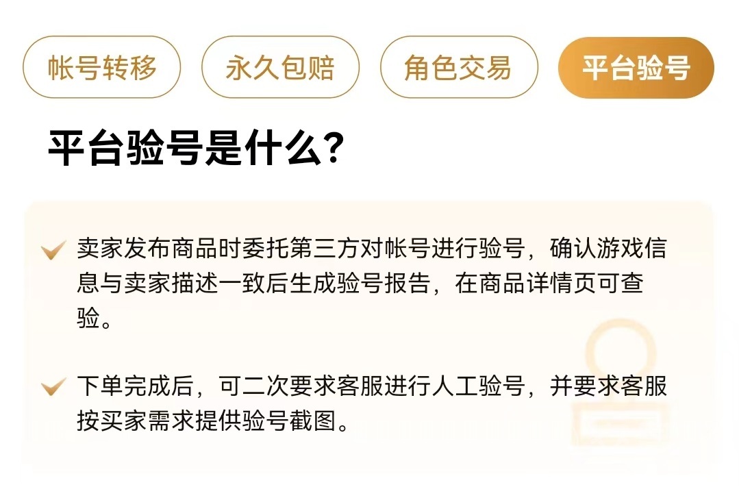 因?yàn)橘~號(hào)中的道具數(shù)量非常多,尤其是一些養(yǎng)成良好的號(hào)更是如此,為了保證展現(xiàn)出來(lái)內(nèi)容真實(shí),平臺(tái)推出了官方驗(yàn)號(hào)服務(wù)。在上架時(shí)候就可以直接接受這一項(xiàng)內(nèi)容,這樣檢驗(yàn)工作就由客服或第三方來(lái)操作,以截圖形式展現(xiàn),所有購(gòu)買者都可以在查看時(shí)候直接點(diǎn)擊看驗(yàn)號(hào)報(bào)告,這樣可以增加雙方信任,加快交易速度。對(duì)于出售者來(lái)說(shuō),也不用在自己截圖上傳和編寫,所有內(nèi)容都清楚展現(xiàn)給購(gòu)買者查看。經(jīng)過(guò)檢驗(yàn)商品同樣會(huì)出現(xiàn)標(biāo)簽,可以在篩選中直接選擇出來(lái)。