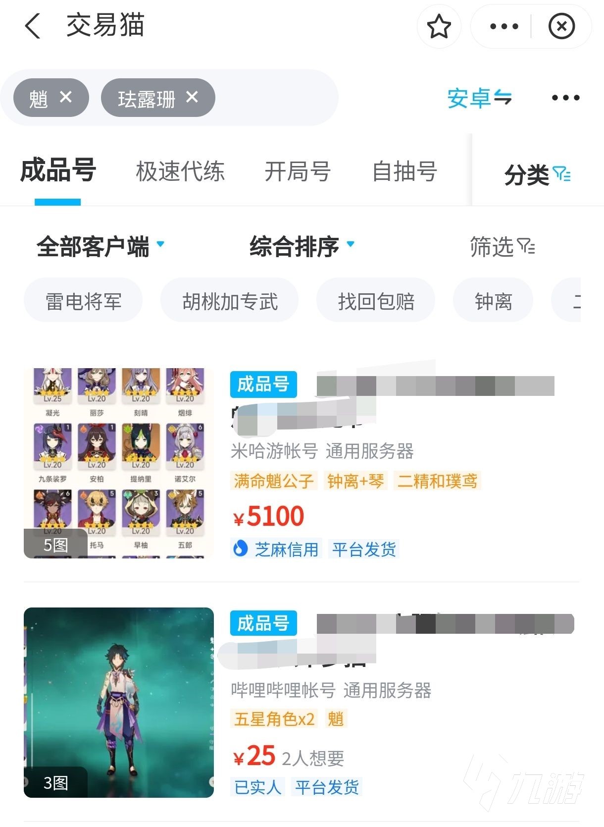 用戶可以在初始號專區(qū)進(jìn)行篩選選擇魈然后進(jìn)行多方對比,選擇出最便宜或者最具性價比的賬號。同時如果玩家并不想要購買初始號,也可以購買其他玩家的自建小號。這樣價格更為便宜,玩家只需要在搜索框中輸入原神,在二級搜索中輸入,就可以獲得一系列關(guān)于魈的原神賬號信息,然后進(jìn)行選擇。