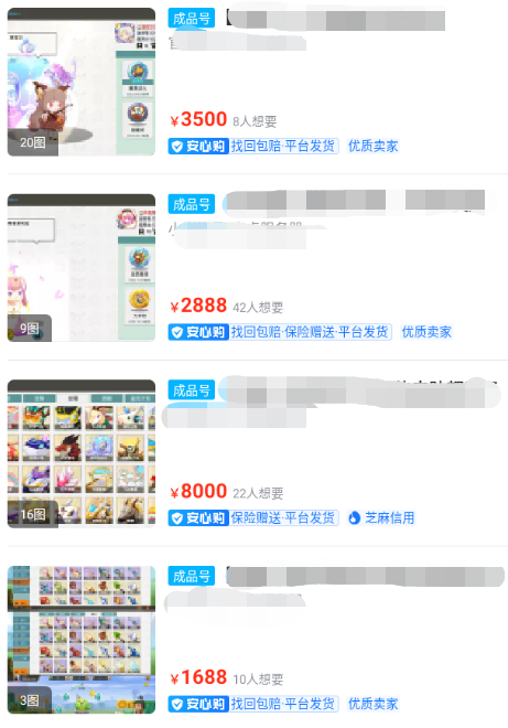 在交易貓上賣號,會需要在上架之前填寫一些賬號的相關情況并上傳截圖,這些截圖經過審核都會一個不漏的展示在您的商品界面,一些有需求的買家也會因此在您的商品面前停留,而且交易貓的活躍買家是很多的,所以完全不用擔心賬號定價高從而沒人光顧,從上圖就能看出上千塊,乃至近萬的賬號都是有不少買家表示出想要意愿的。