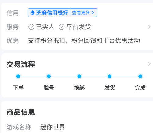 那么關于“迷你世界怎么賣號給別人”的內容就介紹到這里,賣號方法的話其實很簡單,下載一個靠譜的賬號交易平臺即可,而“交易貓”正好就是一個不錯的選擇,大家想下它的話,直接點擊前文鏈接即可。