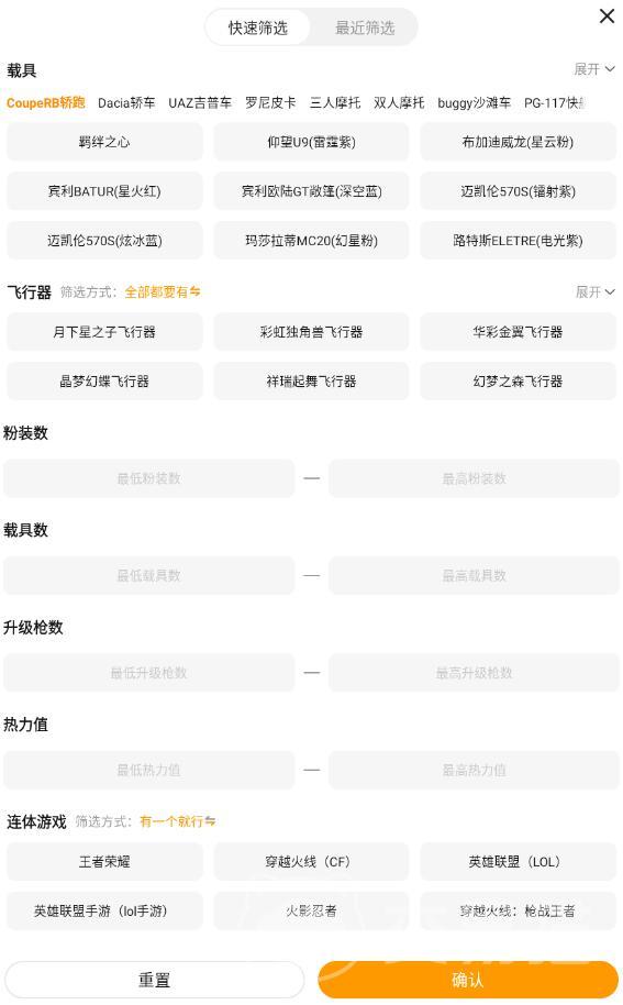 在查找賬號方面,交易貓還是下了一番功夫的,專門為用戶打造了一個精準的篩選功能,打開篩選服務(wù)后,你能看到許多選項,包括了載具數(shù)、粉裝數(shù)、熱力值等等,買家根據(jù)自己的需求選好后,點擊搜索即可找到符合要求的商品。