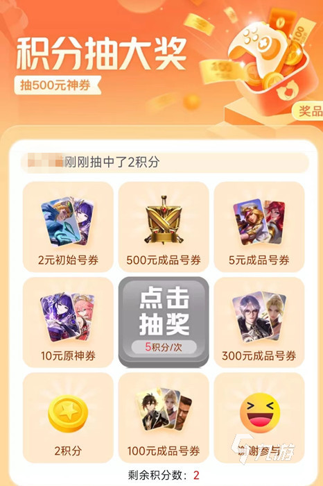 很多玩家鐘愛交易貓平臺的原因,不僅僅是因為這個平臺能觀測到近期的賬號價格走勢,還因為這個平臺的福利活動實在是太給力了。就拿每次簽到和購買賬號所獲得的積分來說,不但可以用于抵扣現(xiàn)金,而且還可以用來抽獎得各種好禮。例如下圖的抽獎池中就有類似“500元成品號券”這樣的驚喜大獎,一旦抽中那真是比撿了錢還高興。