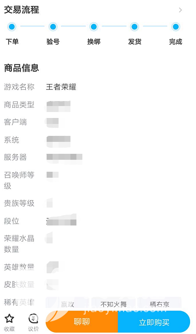 1、在玩家們?yōu)g覽一個(gè)商品的過程當(dāng)中,可以直接了解到整個(gè)商品流程的步驟,而嚴(yán)格的步驟可以讓每一次交易變得更加的安全。同時(shí),在詳情頁面玩家們還可以看到商品的更多系列,包括了所在服務(wù)器和段位、等級、角色數(shù)量等等。同時(shí),大家還可以通過在線溝通功能,與賣家直接在app當(dāng)中進(jìn)行聊天。