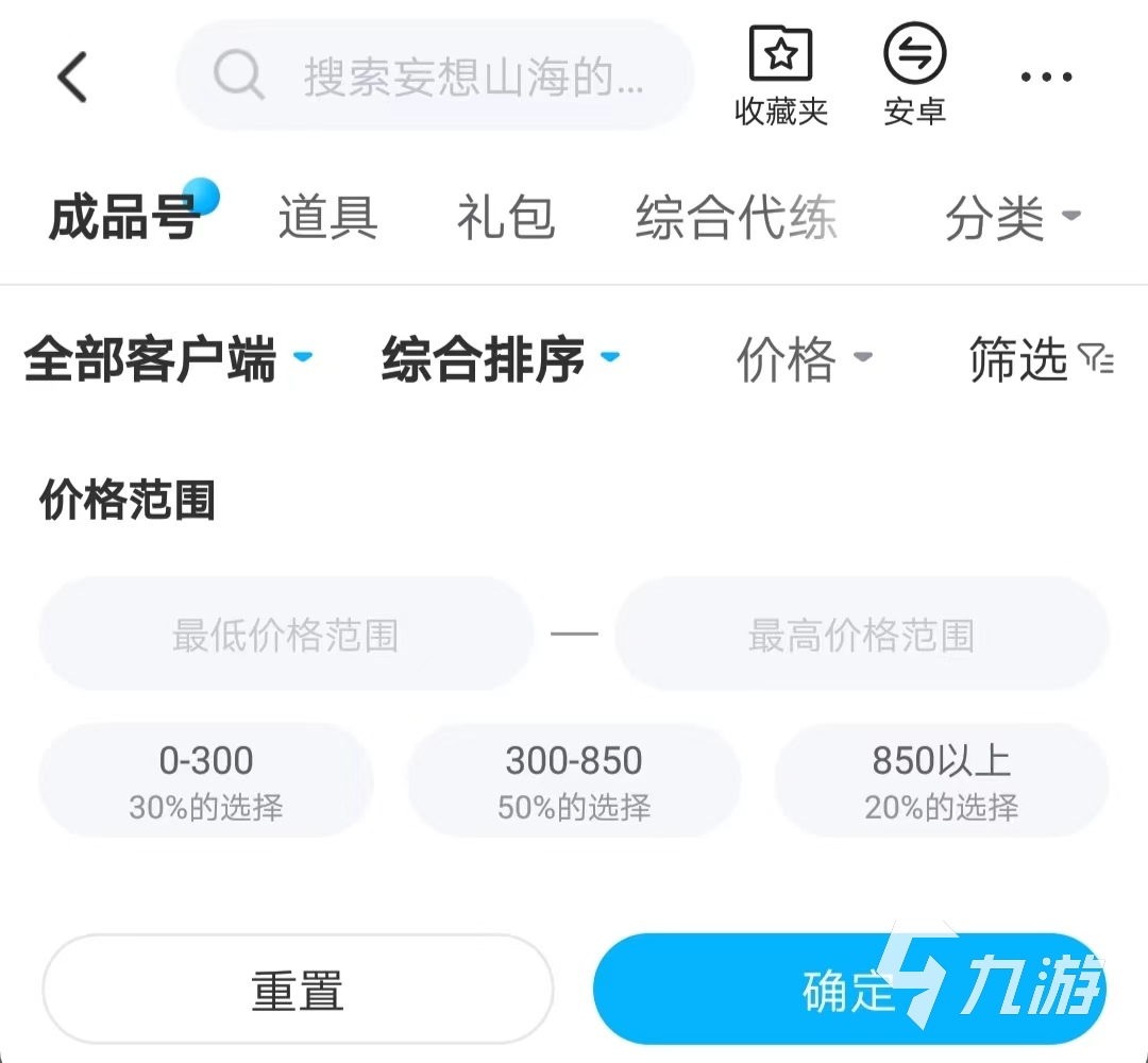 交易貓上賬號交易價格公道。對交易貓熟悉的玩家們都知道,在交易貓上可以對賬號進行估值,還是免費估值。這個估值渠道也很不錯,畢竟交易貓是一個大行交易平臺,賬號交易的價格變化很明顯。那就來搜索一下當下這款游戲在交易貓上的價格區(qū)間,可以看到在800以下的價格比較吃香,那么你的賬號值多少錢呢,無論是想賣號還是想賣號都可以上交易貓上搜索比對吧。