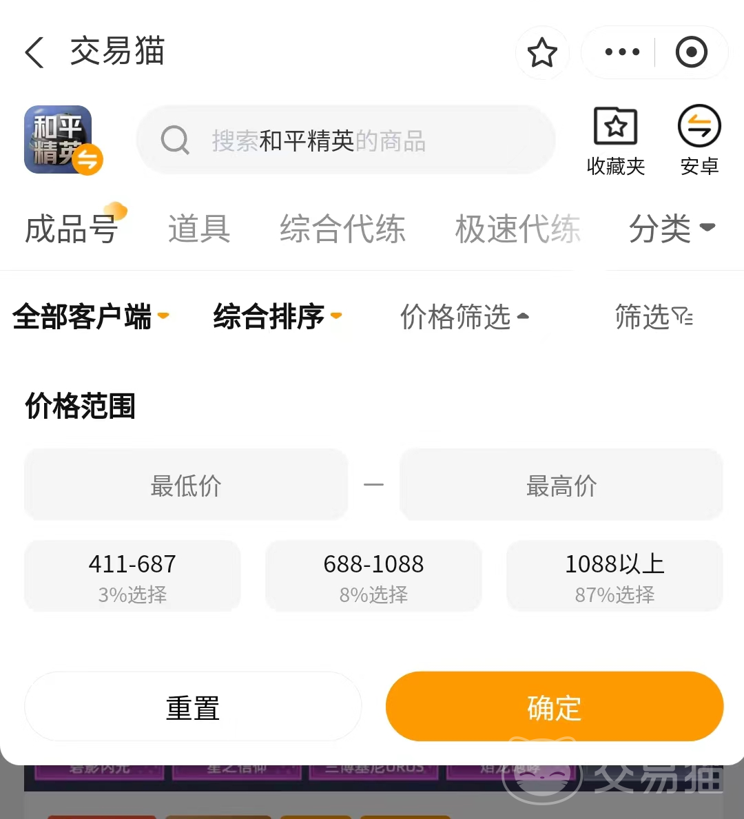 有些玩家可能不太了解市面上的游戲賬號(hào)價(jià)格,只有很少的預(yù)算,覺得太貴的賬號(hào)買不起,那么就可以通過交易貓的價(jià)格篩選功能中輸出自己能出的價(jià)格,這時(shí)候就可以在指定區(qū)間找到自己想要的賬號(hào)了!