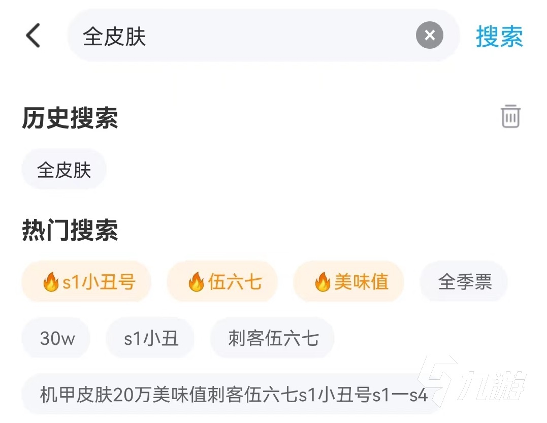來到專區(qū)之后在篩選模式中并沒有提供皮膚選項,我們需要通過上方的商品搜索欄輸入全皮膚這三個字,就可以將簡介中所有帶有全皮膚的商品全部尋找出來。接下來再通過篩選服務(wù)中的價格范圍,或是排序中的從高到低、從低到高等一系列選項就能鎖定性價比高且符合要求的那幾款,詳細查看后就可以下單付款了。