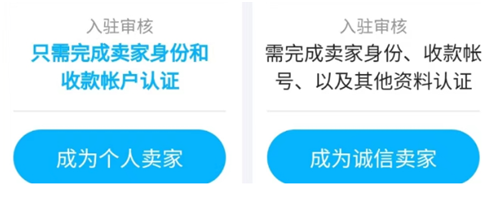 在交易貓上,你可以選擇成為個人賣家或者誠信賣家,成為個人賣家只需完成賣家身份和收款賬戶認證即可,在此基礎(chǔ)上再認證你的芝麻信用就可以成為誠信賣家了,可以說步驟十分簡單方便,節(jié)約了各位賣家的時間