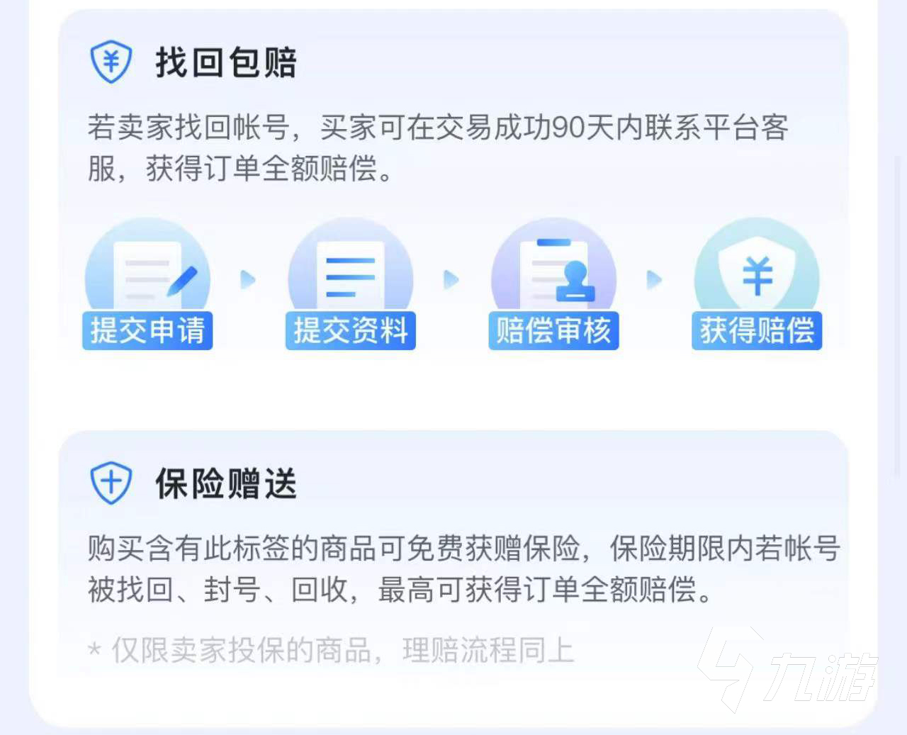 雖然說支持?jǐn)?shù)據(jù)轉(zhuǎn)移已經(jīng)是一件讓人感到很安全的事情了,但是為了進(jìn)一步讓買家們購買你的游戲賬號,你就可以選擇為商品投保,當(dāng)然并不是所有商品都有這種服務(wù)的。然后買家買的時候就會看到你已經(jīng)為他們投保了,這樣就算游戲賬號不小心被人盜了也可以由保險賠償給買家,你不需要承擔(dān)風(fēng)險,也可以讓買家放心地購買。