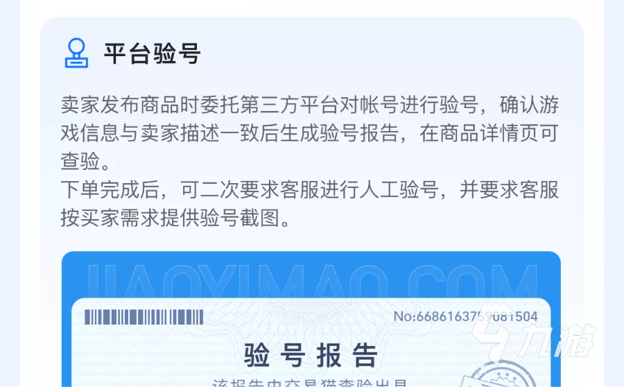在交易貓中有著自主的安心購交易服務(wù),整個(gè)的交易流程都有這統(tǒng)一的管理和平臺(tái)的監(jiān)督,大大提高了游戲賬號(hào)的安全性和交易率。而且在賣家發(fā)布商品之前平臺(tái)都是會(huì)進(jìn)行驗(yàn)號(hào)的,不必?fù)?dān)心是否會(huì)買到虛假的賬號(hào),如果對(duì)于賬號(hào)還是心存疑慮的話,還可以聯(lián)系客服使用二次驗(yàn)號(hào)的功能。