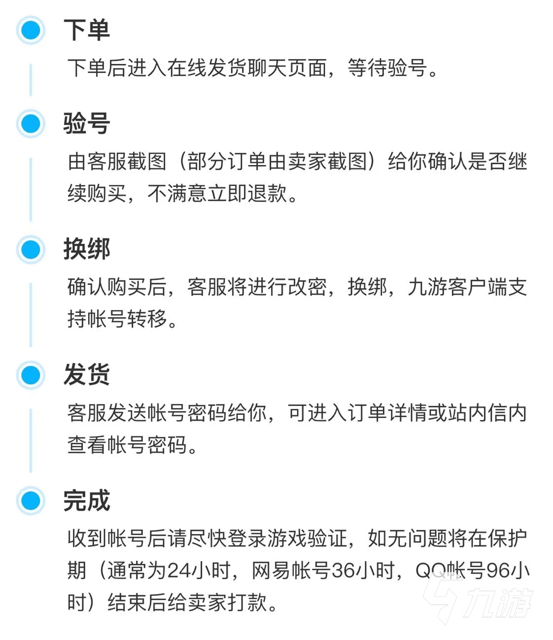 當(dāng)用戶看上一款不錯的賬號時該如何購買呢,只需要點(diǎn)擊立即購買進(jìn)行下單,就可以進(jìn)入到在線發(fā)貨的頁面了,官方客服登陸賬號后和買家進(jìn)行資源確認(rèn),更加專業(yè)驗(yàn)證號源的真實(shí)性。之后就可以進(jìn)行換綁了,收貨后還有一段時間的保護(hù)期,嚴(yán)格保護(hù)用戶的交易過程。