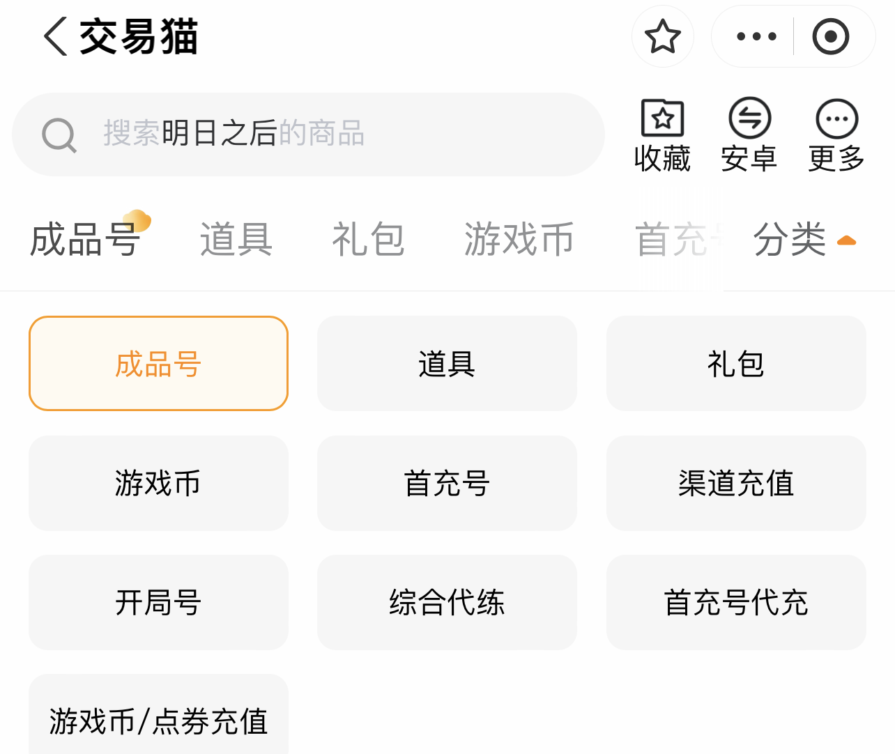 明日之后到了游戲后期,對于武器或者等級(jí)的要求越來越高,想要跟得上最新的版本,就得買一個(gè)自己玩起來更加趁手的賬號(hào)。這時(shí)可前往交易貓,然后便可根據(jù)自身的愛好或者需求入手一個(gè)賬號(hào)。