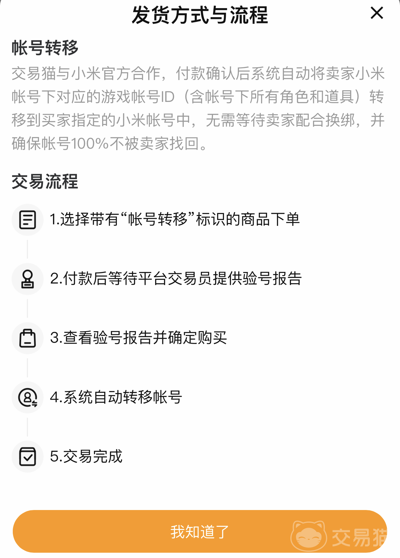 有個(gè)朋友不想要重新記住一個(gè)帳號(hào),這時(shí)候就可以使用交易貓里的帳號(hào)轉(zhuǎn)移功能,若是你買的渠道號(hào)支持帳號(hào)轉(zhuǎn)移的話,就可直接將角色的所有數(shù)據(jù)都轉(zhuǎn)移到你的帳號(hào)上面,這時(shí)便可直接記住輸入你的帳號(hào),不用浪費(fèi)過多的精力,還能節(jié)省一筆不少的錢,畢竟一個(gè)渠道含有多個(gè)游戲角色的話就要花更多的錢入手。