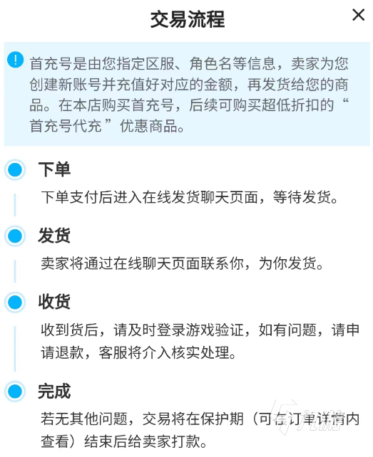 3.對(duì)于很多的新人用戶(hù)來(lái)說(shuō),在第一次接觸到賬號(hào)平臺(tái)交易方面的問(wèn)題時(shí),很容易因?yàn)椴磺宄灰踪~號(hào)的很多流程從而上當(dāng),為了幫助和減少新人用戶(hù)因?yàn)榈谝淮谓佑|到賬號(hào)交易問(wèn)題的煩惱,交易貓平臺(tái)中在進(jìn)行賬號(hào)交易時(shí)專(zhuān)門(mén)羅列出了詳細(xì)的賬號(hào)交易流程介紹,防止新人因?yàn)椴欢媒灰琢鞒虖亩袭?dāng)受騙。