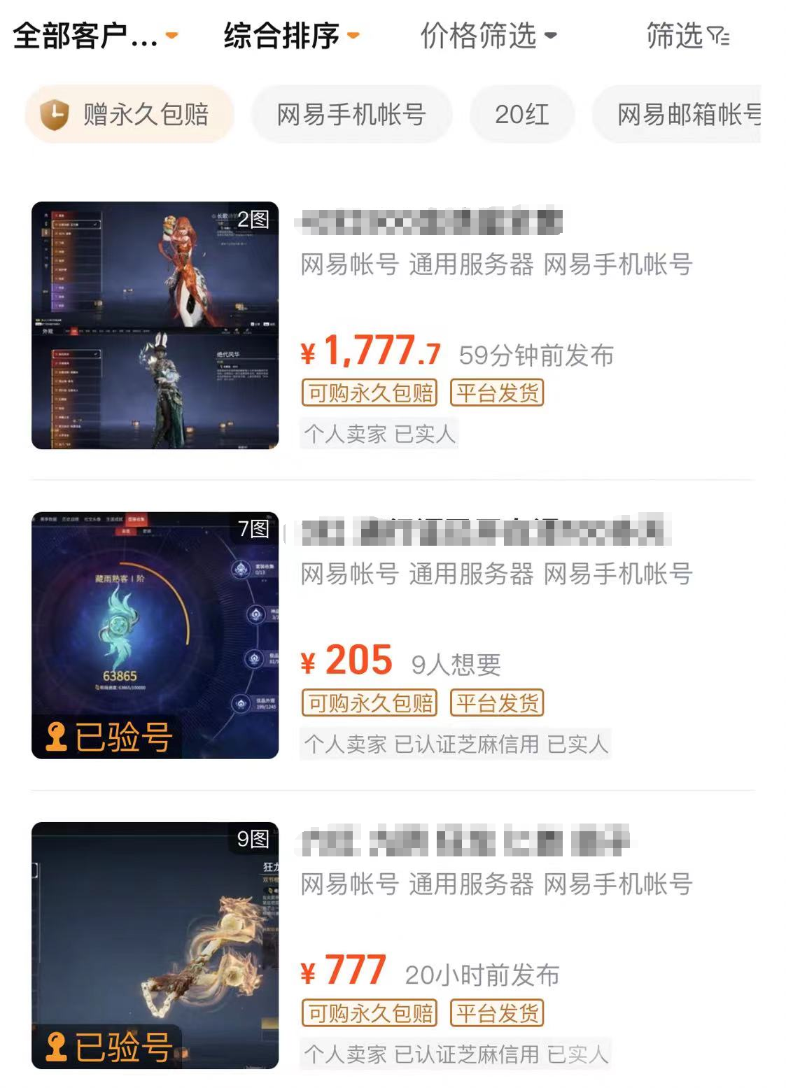 大家可以上交易貓來搜索永劫無間賬號,各種類型的賬號都有,賬號涉及多個價位,有便宜的只需要幾十塊錢的賬號,也有上百元甚至是上千元的高級賬號。大家只要會挑會選,就能找到符合自己要求價格又適宜的賬號,要是遇上了平臺活動,說不定還能低價撿漏到大神的賬號呢。