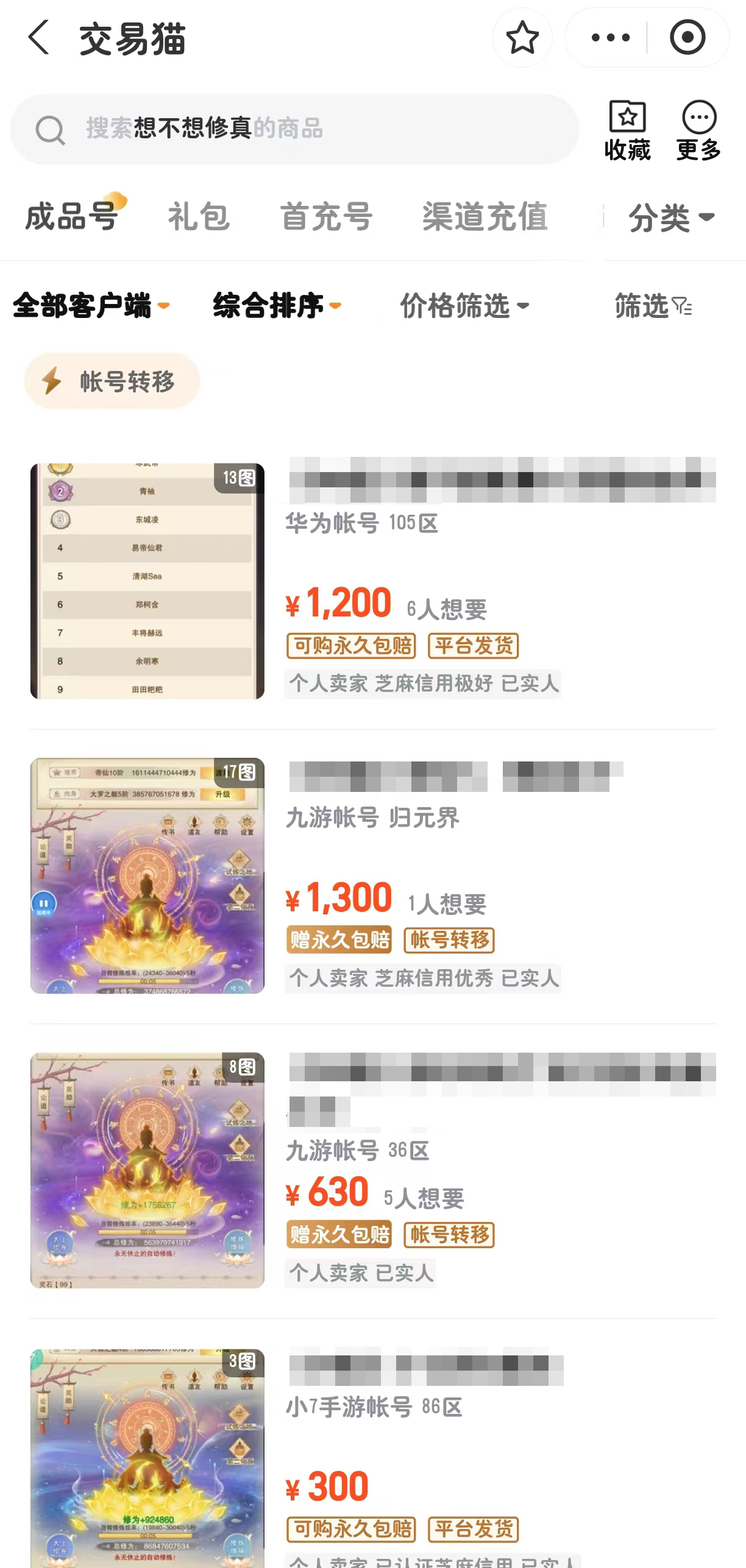 在交易貓上,玩家可以購買到價格公正的想不想修真成品號。這些賬號經(jīng)過平臺的嚴格審核的同時,平臺也會對這些賬號進行估值,避免出現(xiàn)賣家亂要價的情況發(fā)生。與此同時,交易貓還會要求賣家上傳游戲賬號中裝備、等級等方面的截圖,讓買家對賬號有更全面的了解。