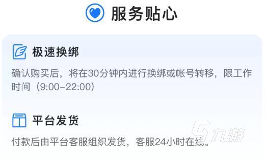 4.服務(wù)迅速,使用便捷。只要你確認(rèn)要購(gòu)買這個(gè)賬號(hào),客服會(huì)在30分鐘內(nèi),為你進(jìn)行賬號(hào)轉(zhuǎn)移或換綁,完成這個(gè)步驟后,平臺(tái)的客服就會(huì)進(jìn)行發(fā)貨,讓你在短時(shí)間內(nèi),用上新號(hào)。