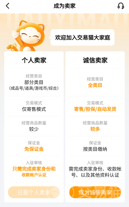 交易貓就是今天小編要為大家介紹的一款人氣賣號平臺了,這款軟件本身的用戶數(shù)量就很多,大家不需要擔(dān)心自己上架賬號后無人問津的情況。而且對于我們只是想要將自己游玩的賬號出售的小伙伴們來說,交易貓也是很良心的。想要賣號需要取得賣家資格,很多平臺申請資格不僅需要交費(fèi)而且非常麻煩,需要等待很長時間。在交易貓中只需要填寫基本的個人信息然后綁定支付寶就可以快速搞定了,整個過程都要不了解幾分鐘,而且不需要事先繳費(fèi)。