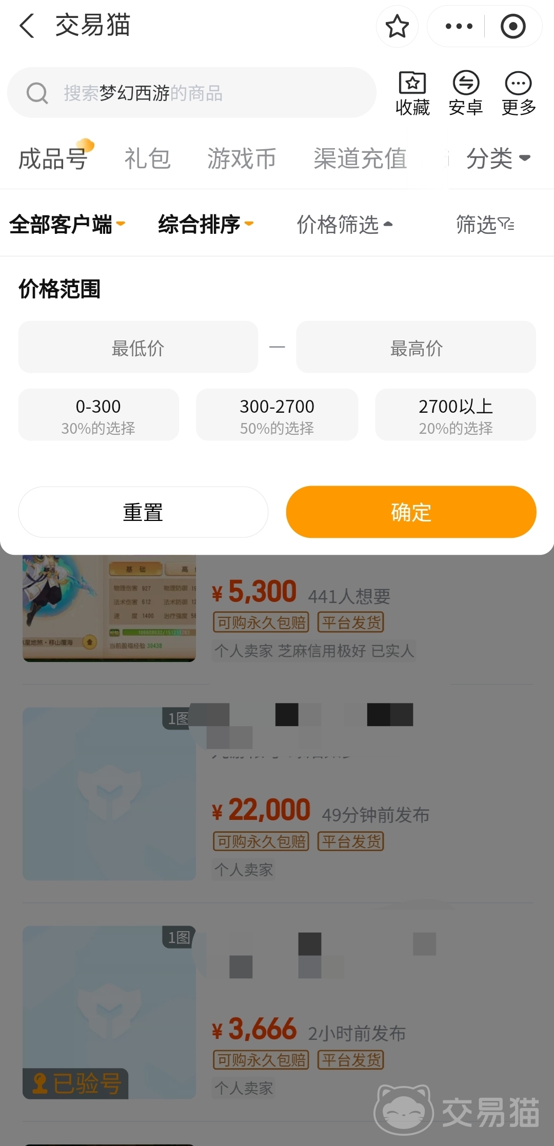 賣家自己的游戲賬號(hào)價(jià)值通常遠(yuǎn)高于其售價(jià),因此他們往往以較低價(jià)格出售。買家下單后可以在這些商品中進(jìn)行比較和挑選,利用平臺(tái)的篩選功能輸入可接受的價(jià)格范圍,篩選出來的商品都是符合要求的。當(dāng)然,由于賬號(hào)練度因人而異,買家仍需要逐一查看和判斷。