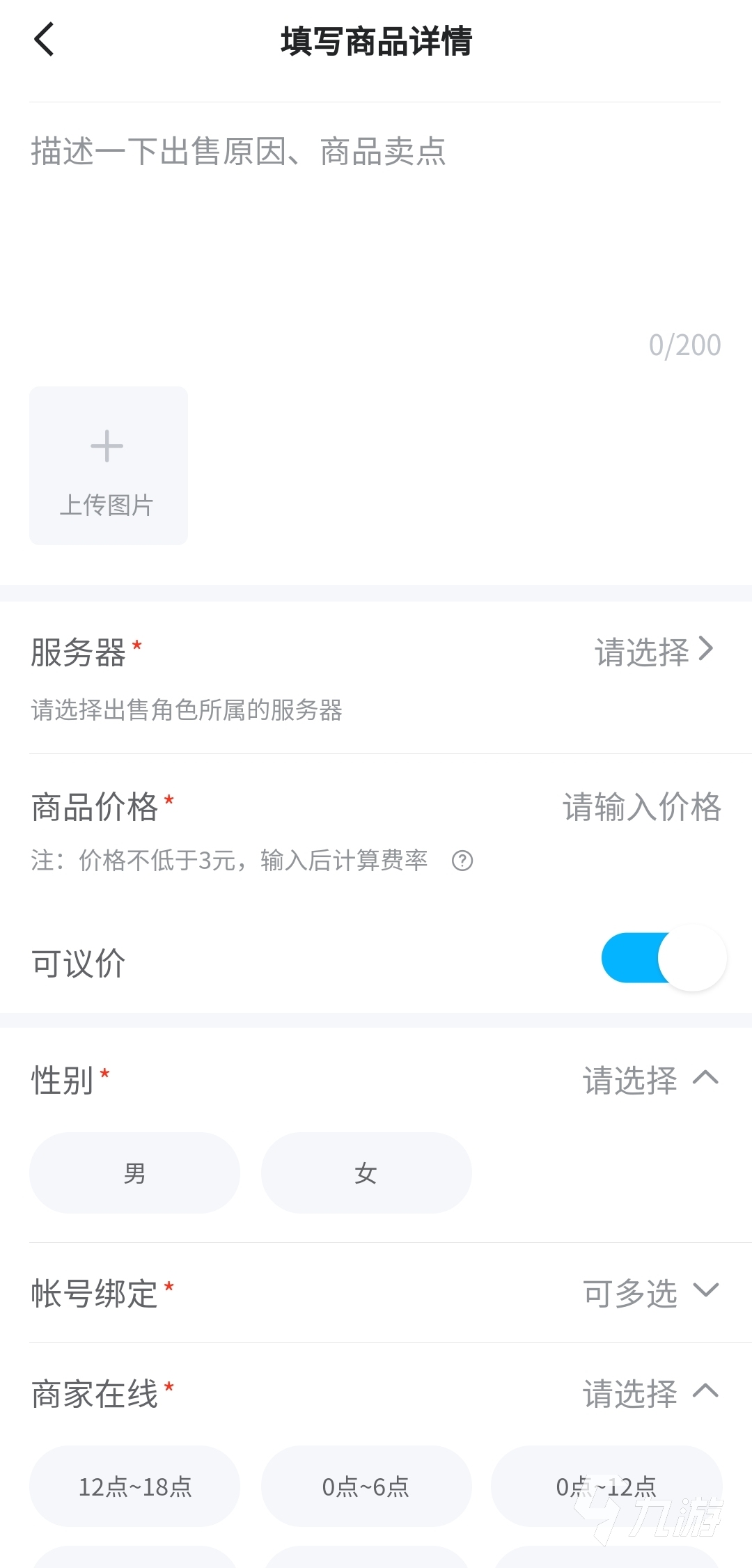 賣號(hào)方便是交易貓的另一個(gè)優(yōu)點(diǎn),在上架前的商品介紹是必要的準(zhǔn)備工作,平臺(tái)已經(jīng)提供了模板,不用大段介紹,很輕松就能將賬號(hào)情況介紹清楚,大大簡(jiǎn)化了上架流程。