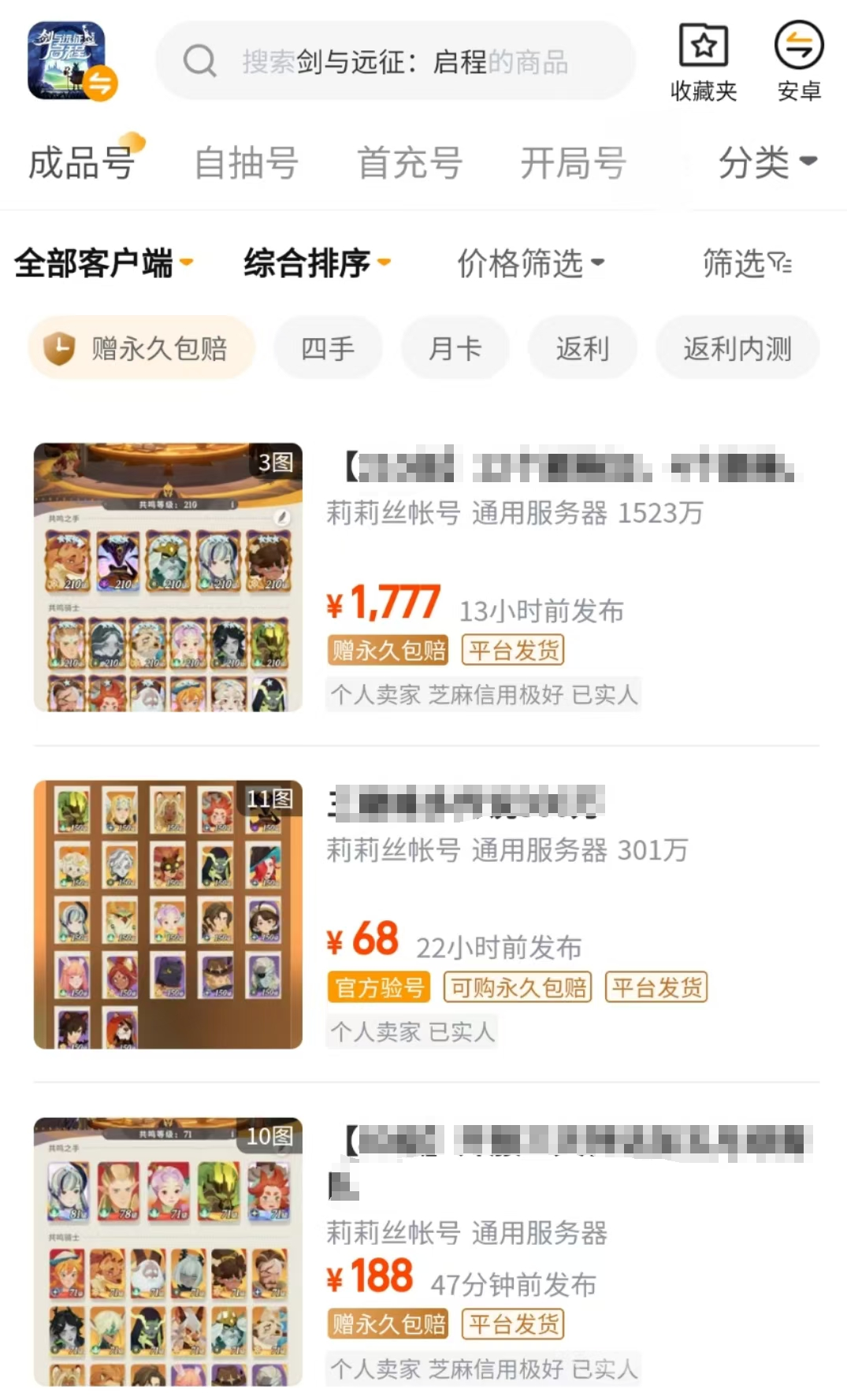 交易貓平臺上的商品種類繁多,能夠滿足大部分玩家的買號需求。當(dāng)你找到一個《劍與遠征》的賬號時,如果該賬號的詳情頁上顯示了“驗號”標(biāo)志,這就說明該賬號的詳情信息與實際情況一致。這個標(biāo)志表明賬號信息經(jīng)過了驗證,因此你可以更放心地考慮購買,避免了虛假宣傳的問題。這種透明的驗證機制為玩家提供了更多的保障,確保交易過程更加安全可靠。